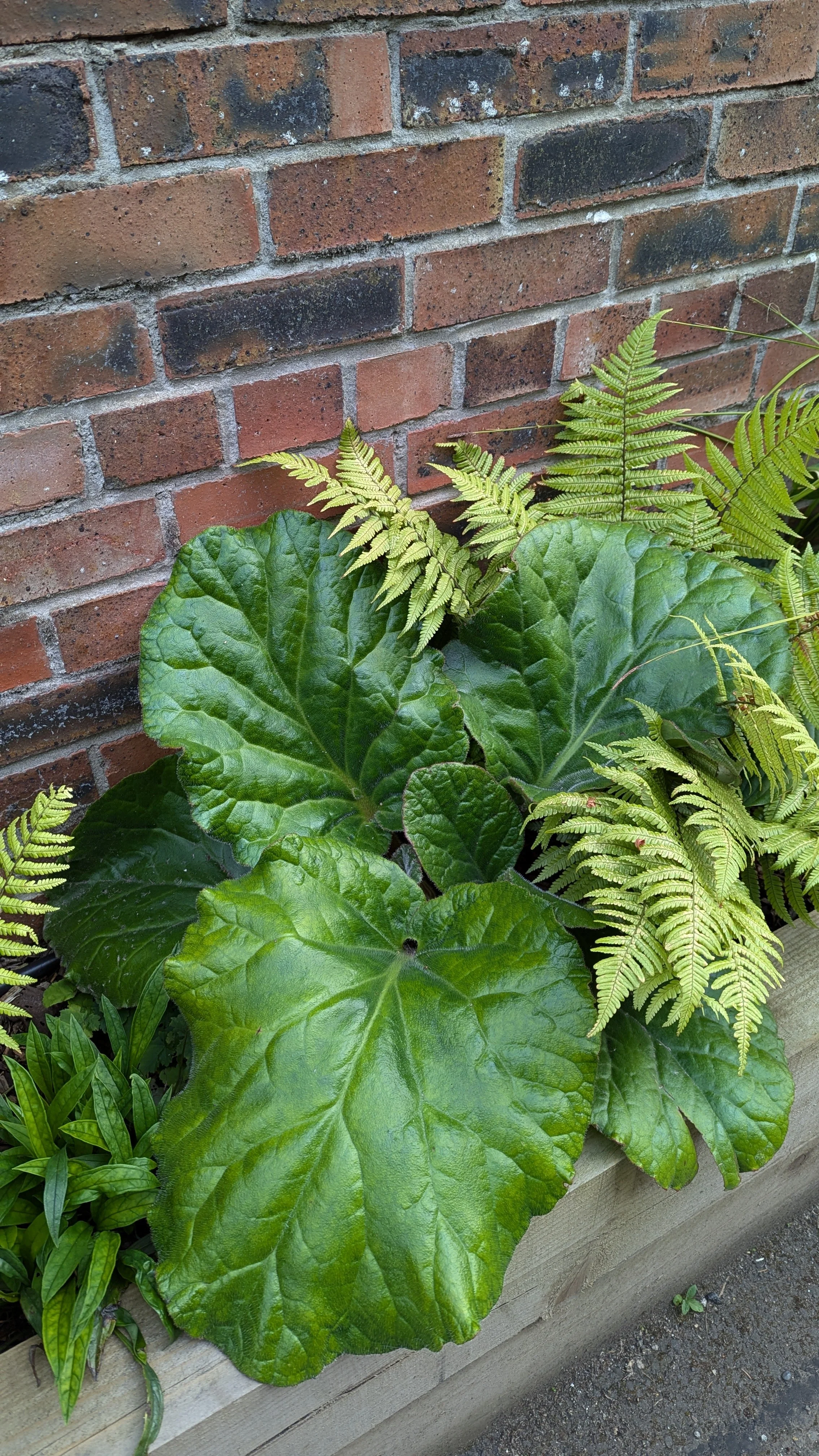 Grow for its dramatic foliage and textural interest. Commonly available.