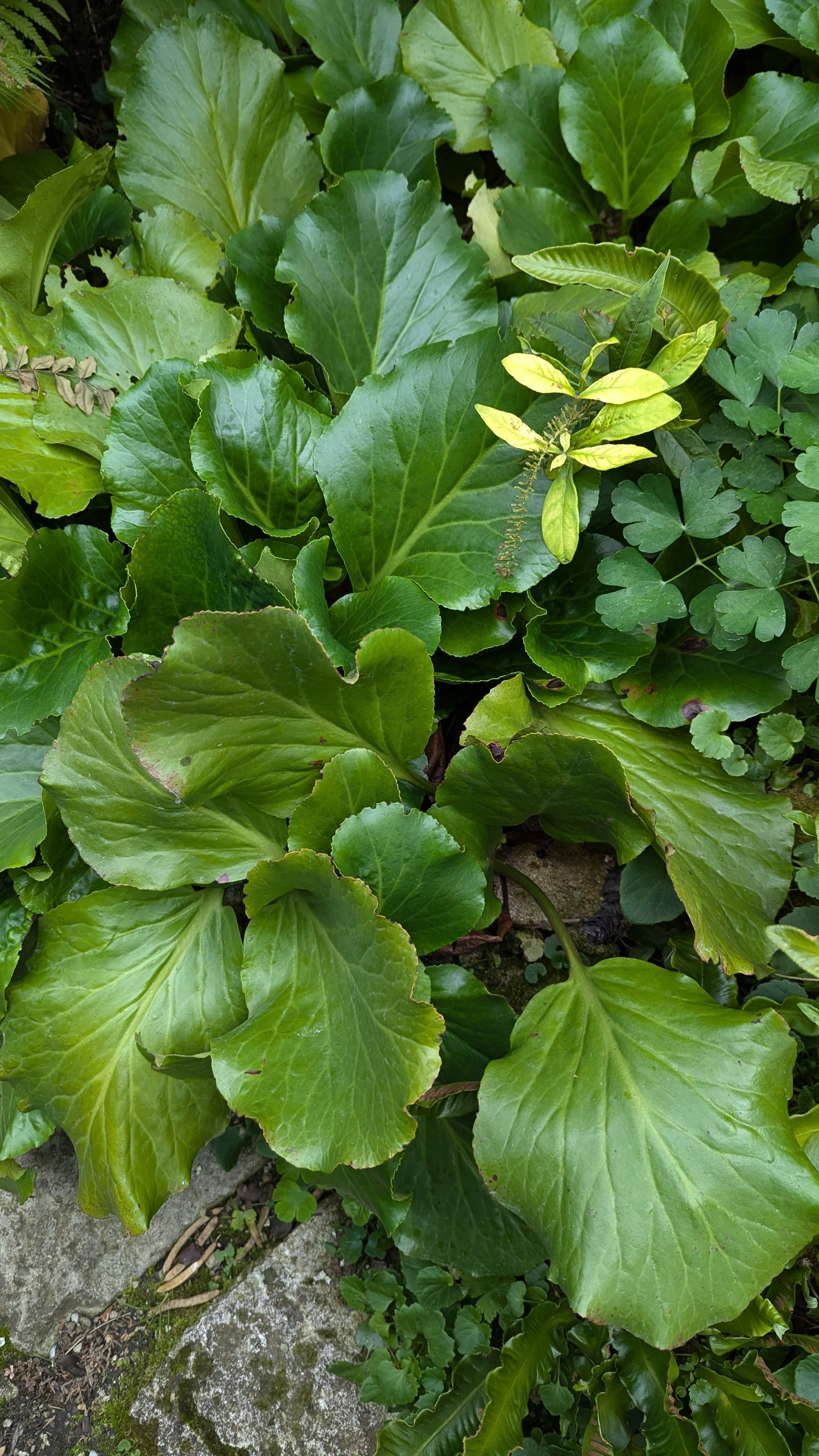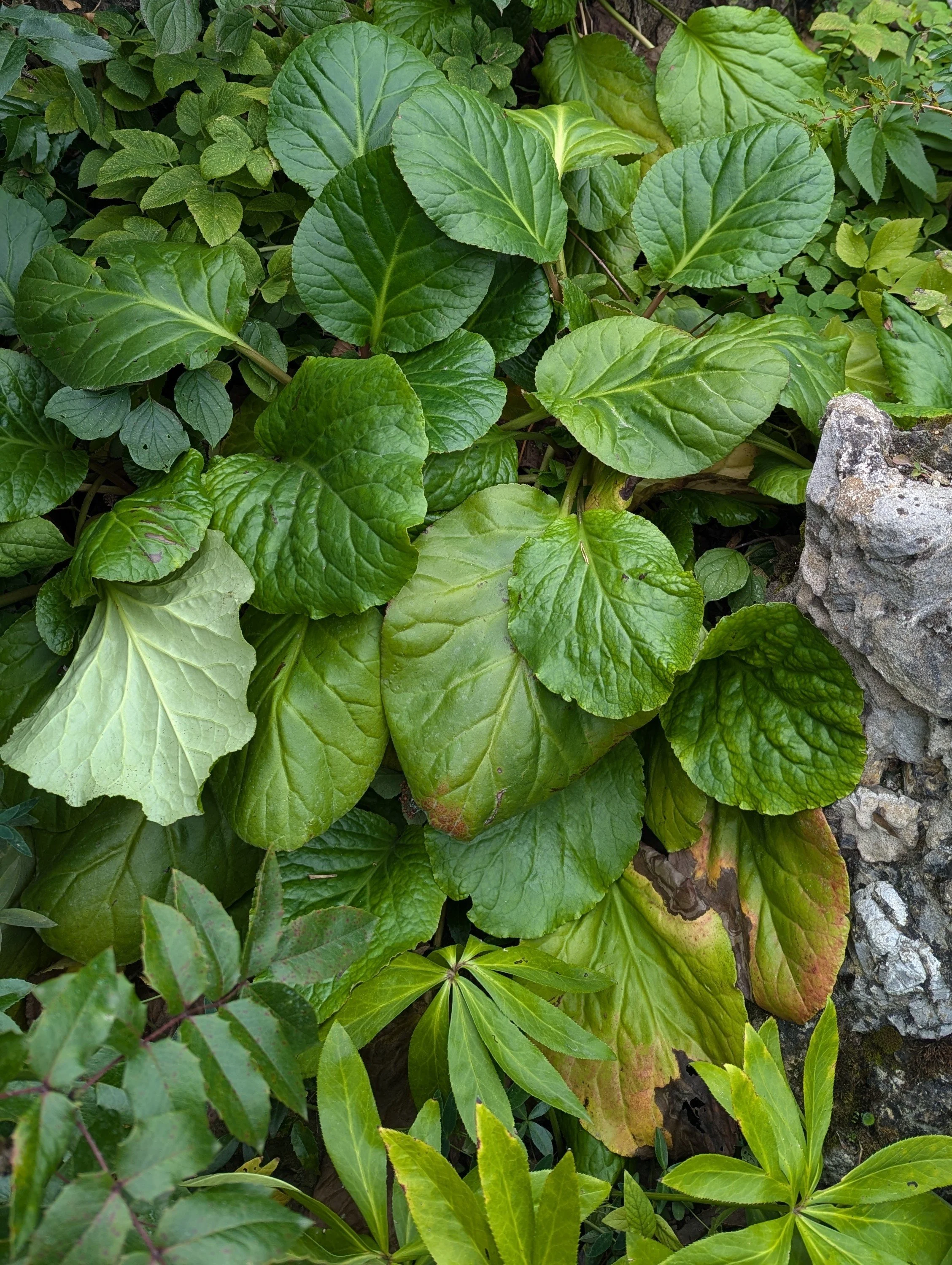 They were first introduced into cultivation in the west in the mid-18th century and described by Conrad Moench who named them in honour of German botanist and physician Karl August von Bergen. They are commonly referred to as Elephant’s Ears due to the size of their paddle shaped leaves or as Giant Rock Foil due to the ability of their rhizome to break apart rocks. In Ayurveda, the rhizome is used in a similar way to break up kidney stones.